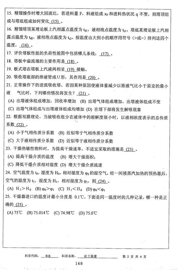 2014年中国矿业大学化工原理考研真题(2)