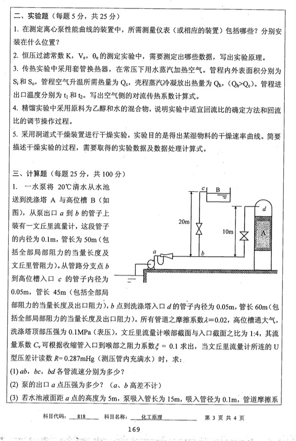 专业课考研资料 本站小编 免费考研网 2019-12-142001年中国矿业大学考研化工原理真题