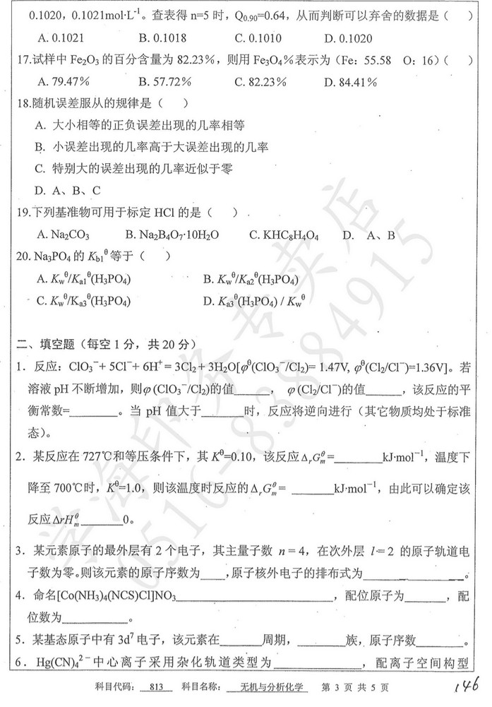 中国矿业大学2015年无机与分析化学考试真题(3)