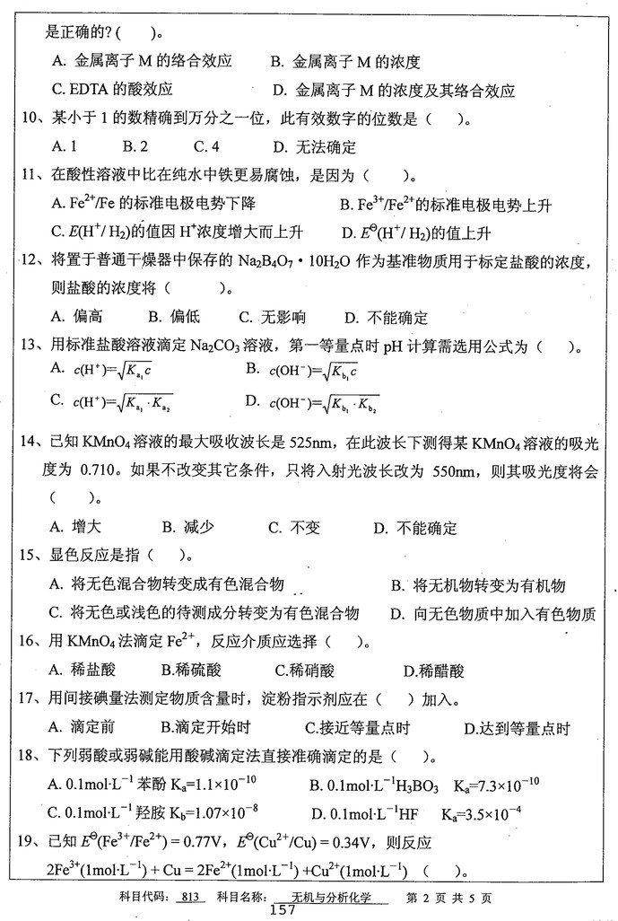 2014年中国矿业大学无机与分析化学考研真题(2)