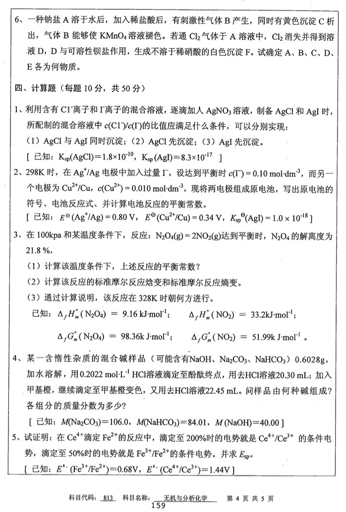 2014年中国矿业大学无机与分析化学考研真题(4)