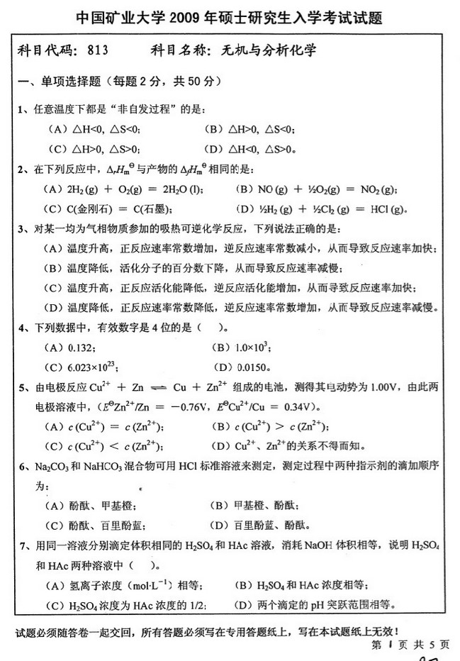 专业课考研资料 本站小编 免费考研网 2019-12-142014年中国矿业大学无机与分析化学考研真题