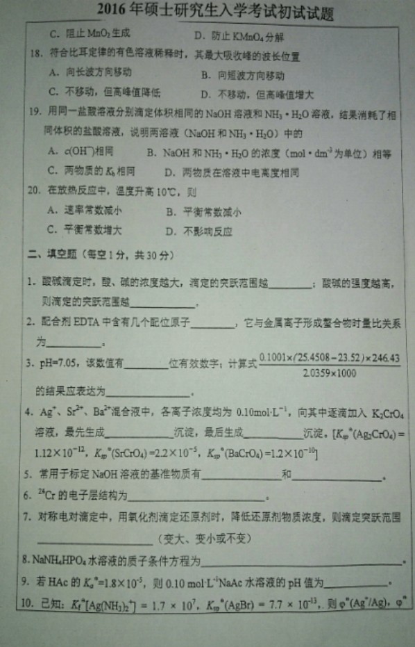 2016年中国矿业大学无机及分析化学考研真题(3)