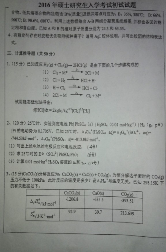 化工原理选择填空题精选 ① 物理吸收操作属于____过程,是一组分通过另一静止组分的____扩散。 ② 当平衡线在所涉及的范围内是斜率为m的直线时,则1/K =1/k +___1/k 。 ① 在填料塔中用清水吸收混合气中NH ,当水泵发生故障上水量减少时,气相总传质 单元数N ______ (A)增加; ...专业课考研资料 本站小编 免费考研网 2019-12-142015中国矿业大学物理化学考研真题