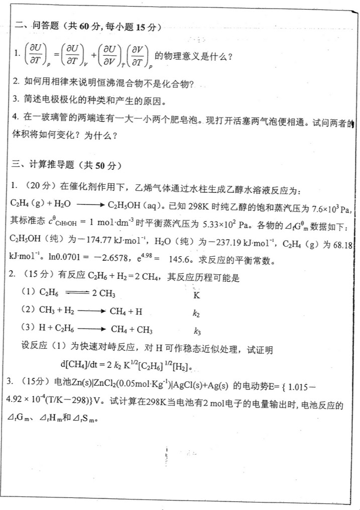 专业课考研资料 本站小编 免费考研网 2019-12-142016年中国矿业大学物理化学考研真题