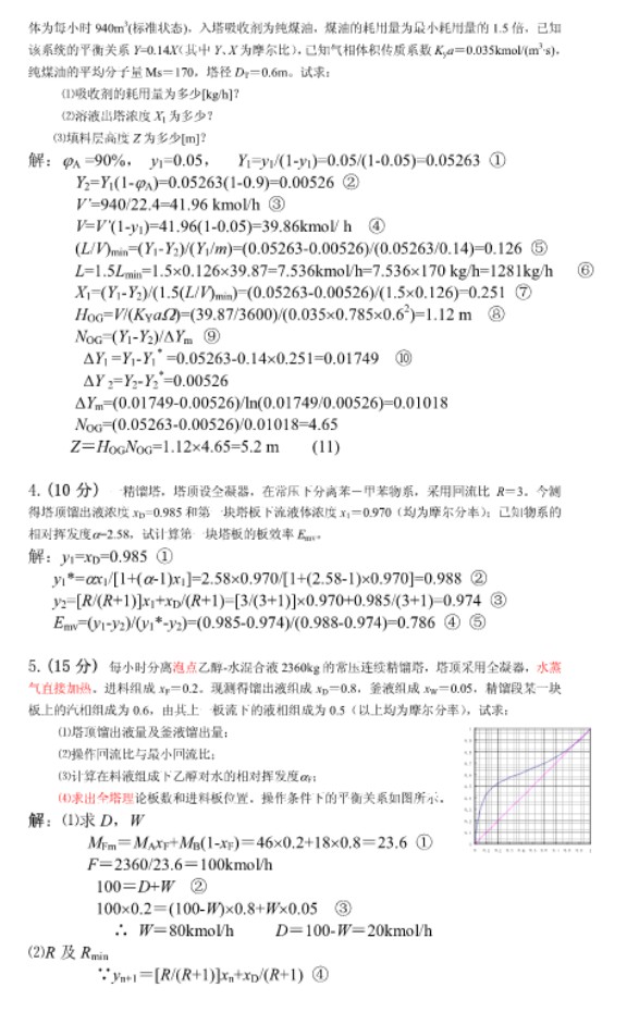 化工原理选择填空题精选 ① 物理吸收操作属于____过程,是一组分通过另一静止组分的____扩散。 ② 当平衡线在所涉及的范围内是斜率为m的直线时,则1/K =1/k +___1/k 。 ① 在填料塔中用清水吸收混合气中NH ,当水泵发生故障上水量减少时,气相总传质 单元数N ______ (A)增加; ...专业课考研资料 本站小编 免费考研网 2019-12-142015中国矿业大学物理化学考研真题