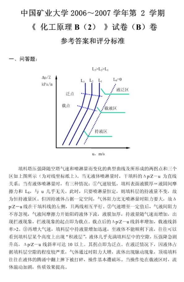 中国矿业大学2006-2007年化工原理试卷带详细答案(5)