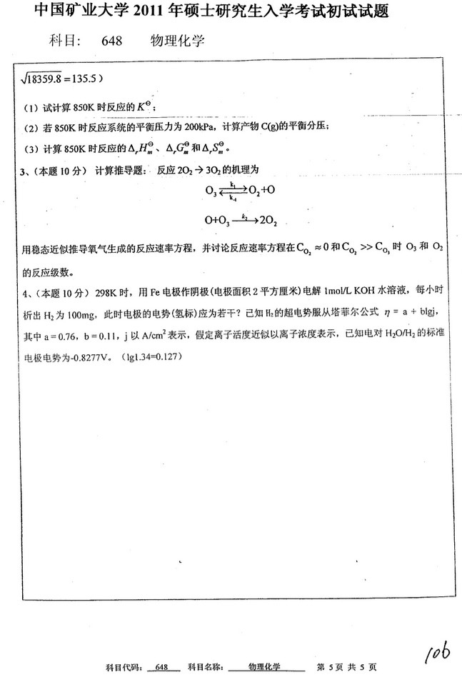 专业课考研资料 本站小编 免费考研网 2019-12-14中国矿业大学2013年物理化学考研真题