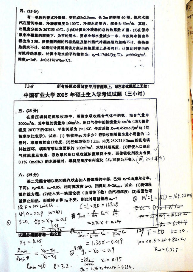 专业课考研资料 本站小编 免费考研网 2019-12-14中国矿业大学2005-2006化工原理试卷带详细答案