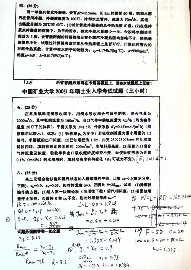 专业课考研资料 本站小编 免费考研网 2019-12-14中国矿业大学2005-2006化工原理试卷带详细答案