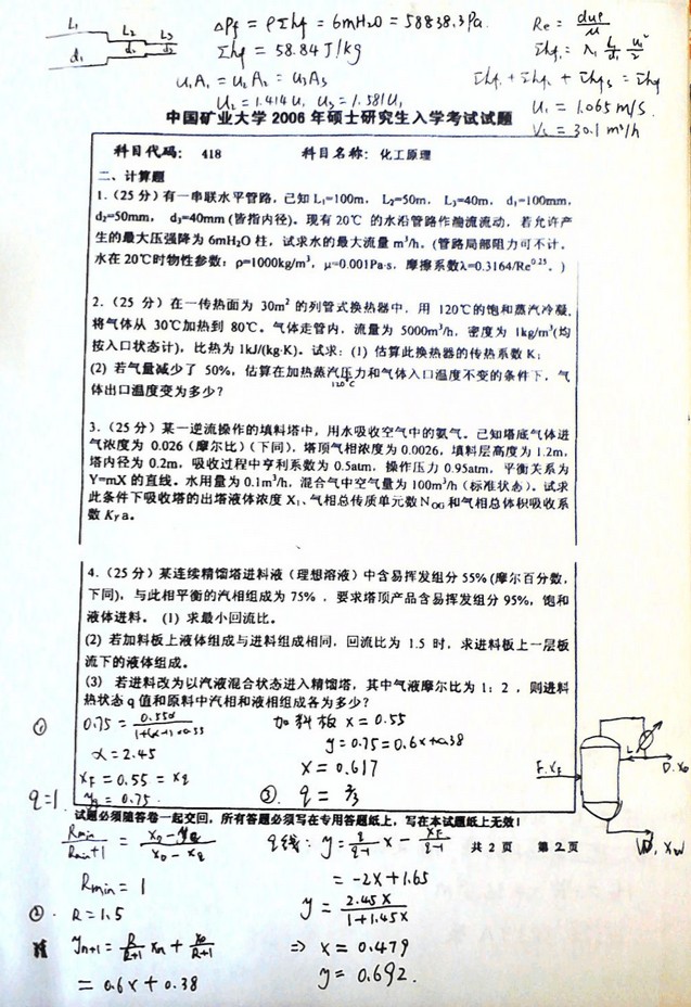 专业课考研资料 本站小编 免费考研网 2019-12-14中国矿业大学2005-2006化工原理试卷带详细答案