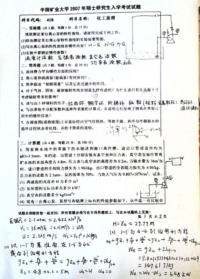 专业课考研资料 本站小编 免费考研网 2019-12-14中国矿业大学2006-2007年化工原理试卷带详细答案