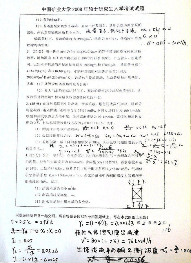 中国矿业大学1999-2012年化工原理考研真题答案(34)