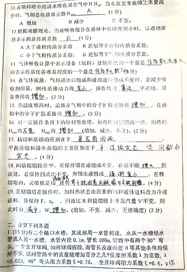 专业课考研资料 本站小编 免费考研网 2019-12-14中国矿业大学2006-2007年化工原理试卷带详细答案