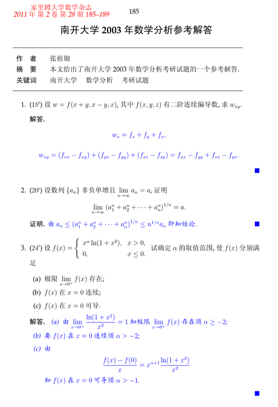 南开大学2000-2010年数学分析考研试题解答(13)
