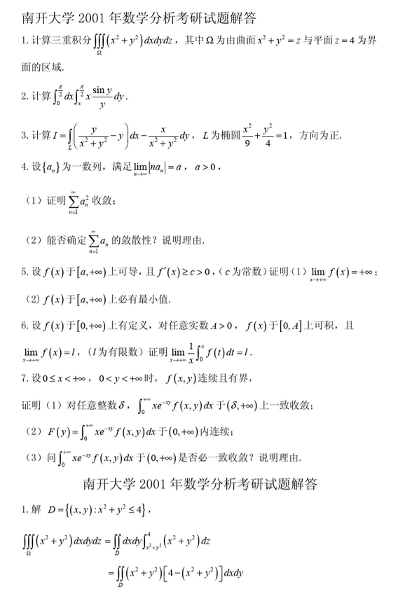 南开大学2000-2010年数学分析考研试题解答(7)
