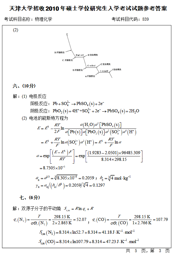 天津大学2010物理化学考研真题(8)