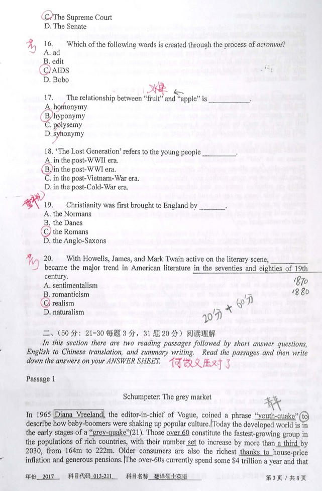东华大学2017年翻译硕士英语考试试题带参考答案(3)