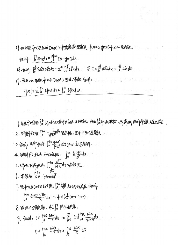 武汉大学内部数学分析复习试题手写版笔记(11)