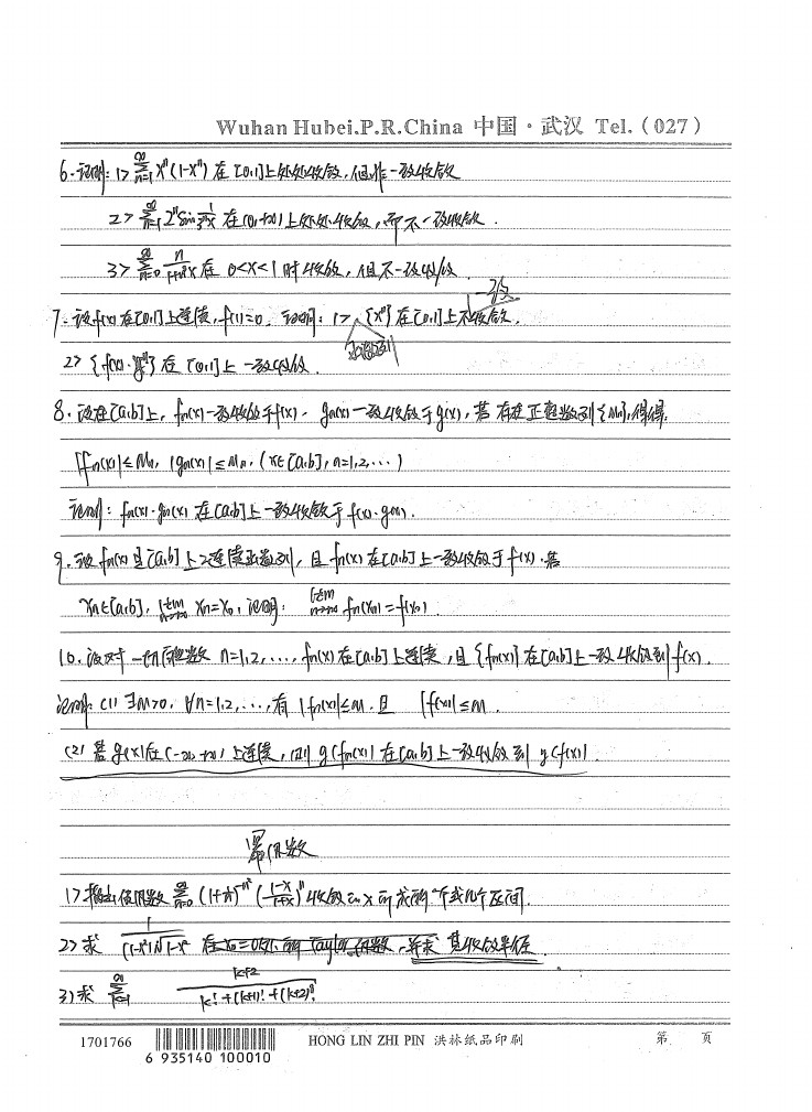 武汉大学内部数学分析复习试题手写版笔记(14)
