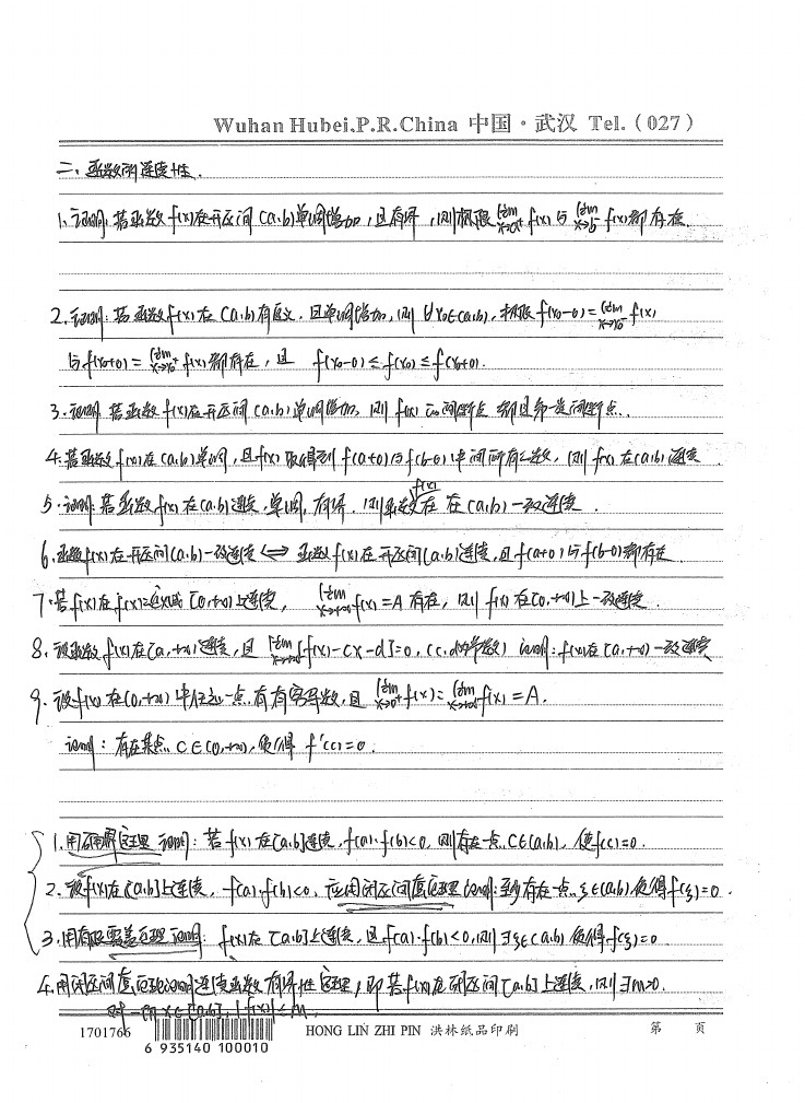 武汉大学内部数学分析复习试题手写版笔记(4)