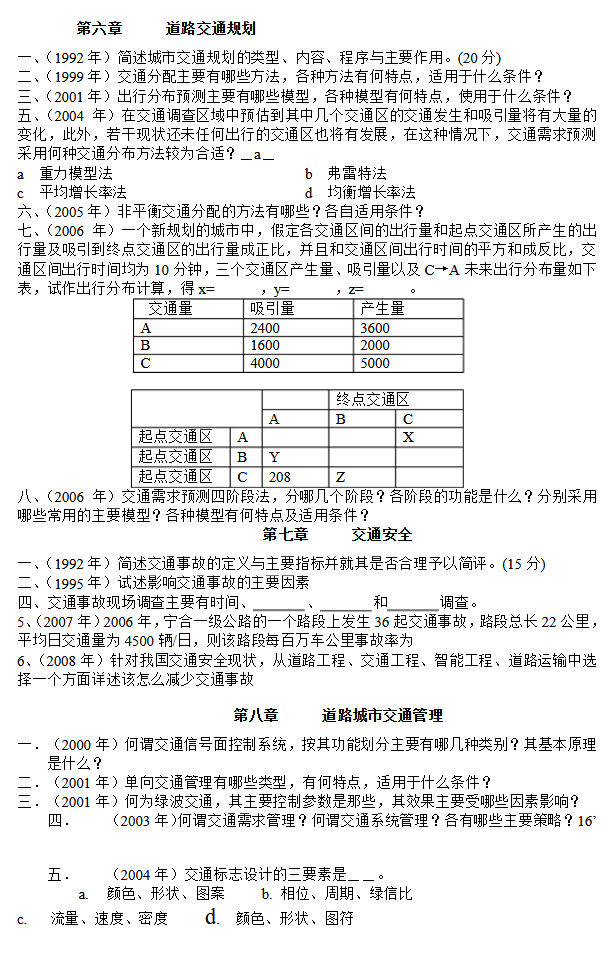 东南大学交通运输规划与管理专业考研考试试题(7)