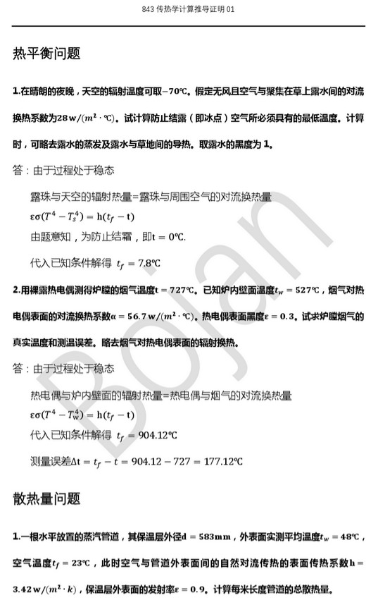 大连理工大学843传热学考研历年真题汇总分类——计算推导证明
