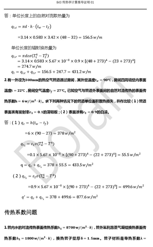 大连理工大学843传热学考研历年真题汇总分类——计算推导证明(2)