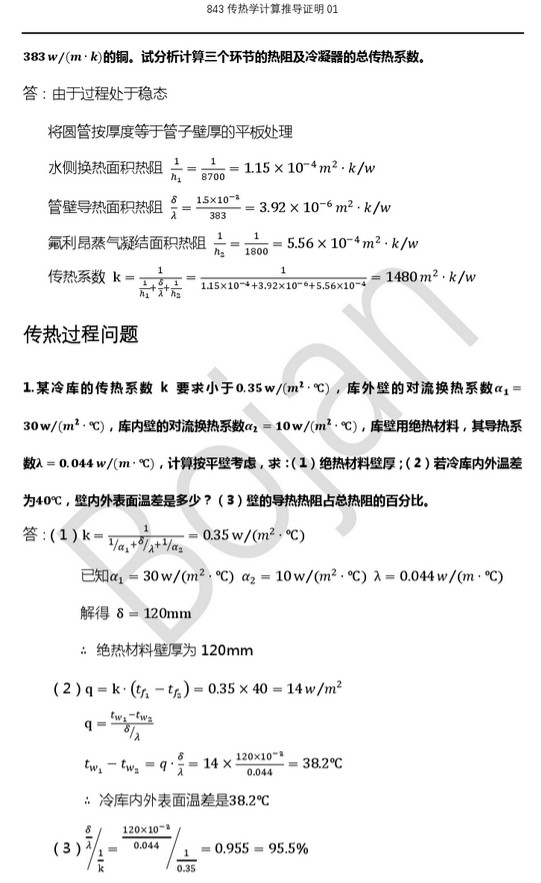 大连理工大学843传热学考研历年真题汇总分类——计算推导证明(3)
