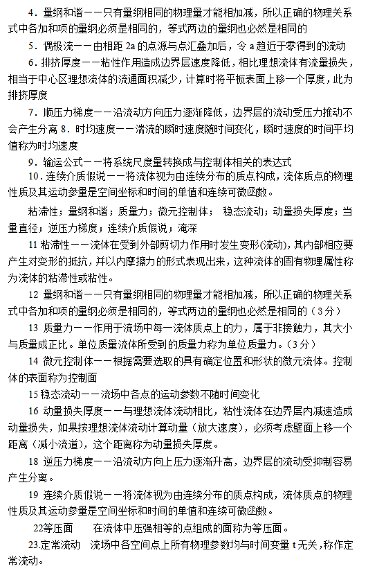 工程流体力学考研期末简答题名词解释汇总(3)