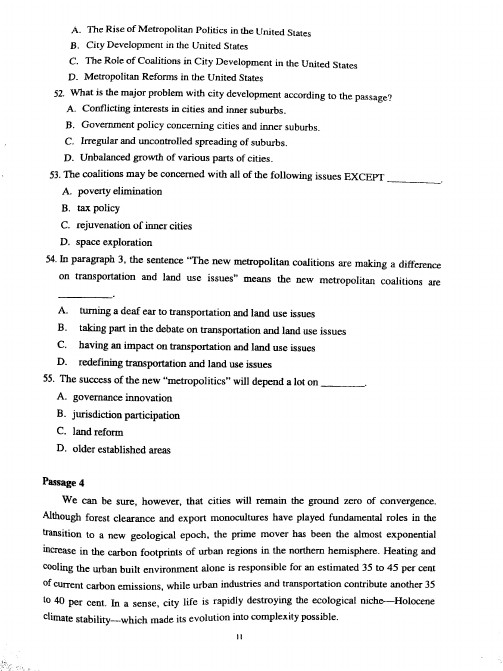 历年真题 2017年中国人民大学博士研究生入学考试英语试题 Part Ⅱ Reading Comprehension (40 %) Directions: There are 4 reading passages in this part. Each passage is followed by some questions or unfinished statements. For each of them there are four choices marked A, B, C and D.You should decide ...