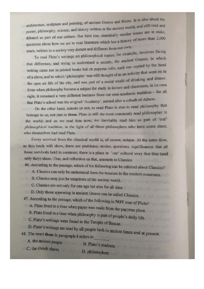 历年真题 2017年中国人民大学博士研究生入学考试英语试题 Part Ⅱ Reading Comprehension (40 %) Directions: There are 4 reading passages in this part. Each passage is followed by some questions or unfinished statements. For each of them there are four choices marked A, B, C and D.You should decide ...