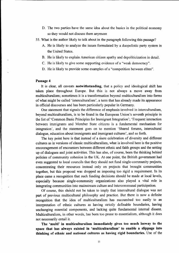 历年真题 2017年中国人民大学博士研究生入学考试英语试题 Part Ⅱ Reading Comprehension (40 %) Directions: There are 4 reading passages in this part. Each passage is followed by some questions or unfinished statements. For each of them there are four choices marked A, B, C and D.You should decide ...