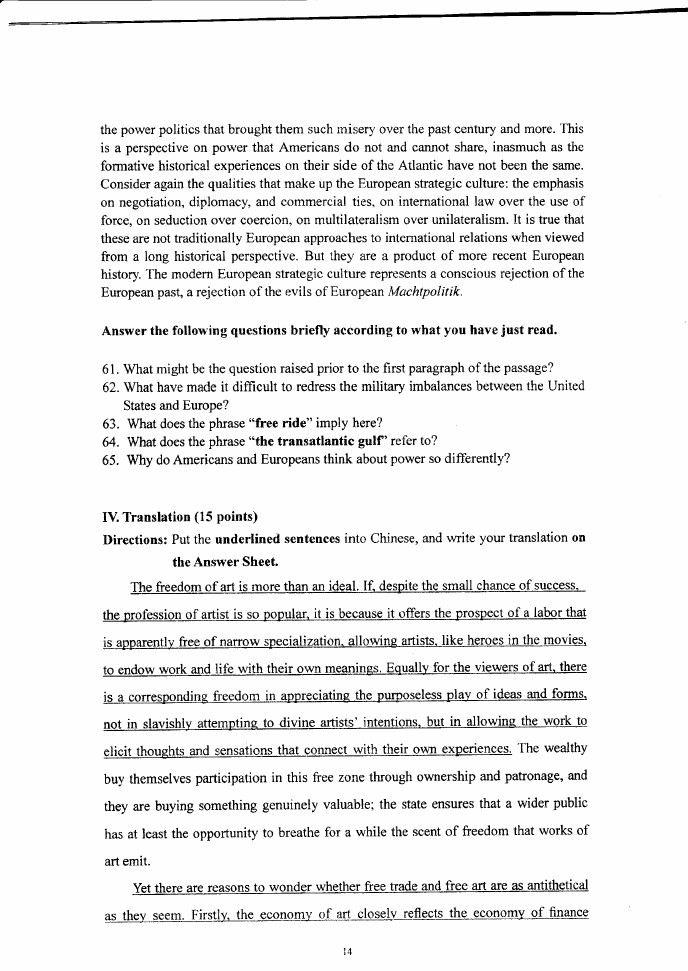 • 对外经济贸易大学2009-2014考博英语真题和答案详解