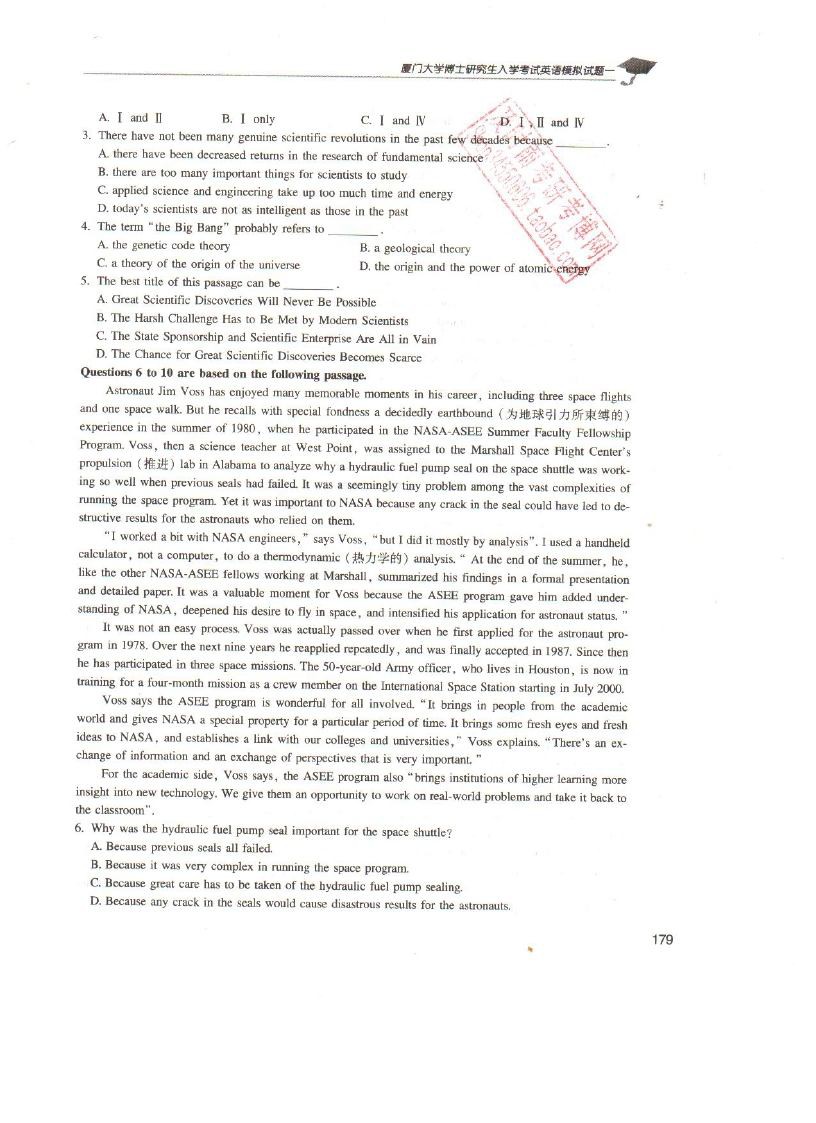 厦门大学2010-2011,2014考博英语真题及答案(24)