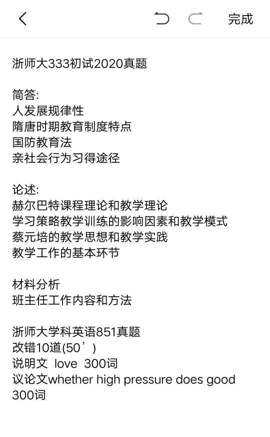 2019年浙江师范大学333真题 一、名词解释: 1、 尊德性与道问学 2、 小先生制 3、 快乐之家 4、 贝尔-兰卡斯特制 5、 内隐学习 6、 成就动机 二、简答题: 1、 简述宋朝书院的特点 2、 简述革命根据地教育的基本经验 3、 简述我国教育目的的理论价值 4、 简述教师劳动的价值 ...专业课考研资料 本站小编 免费考研网 2019-12-15学科英语上岸学姐的经验