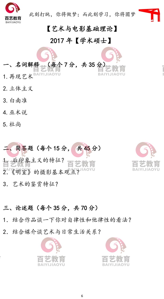 • [2019初试真题回忆] 2019年北京电影学院艺术与电影基础理论真题回忆版