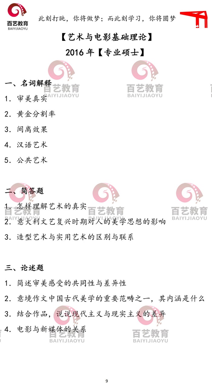 • [2019初试真题回忆] 2019年北京电影学院艺术与电影基础理论真题回忆版