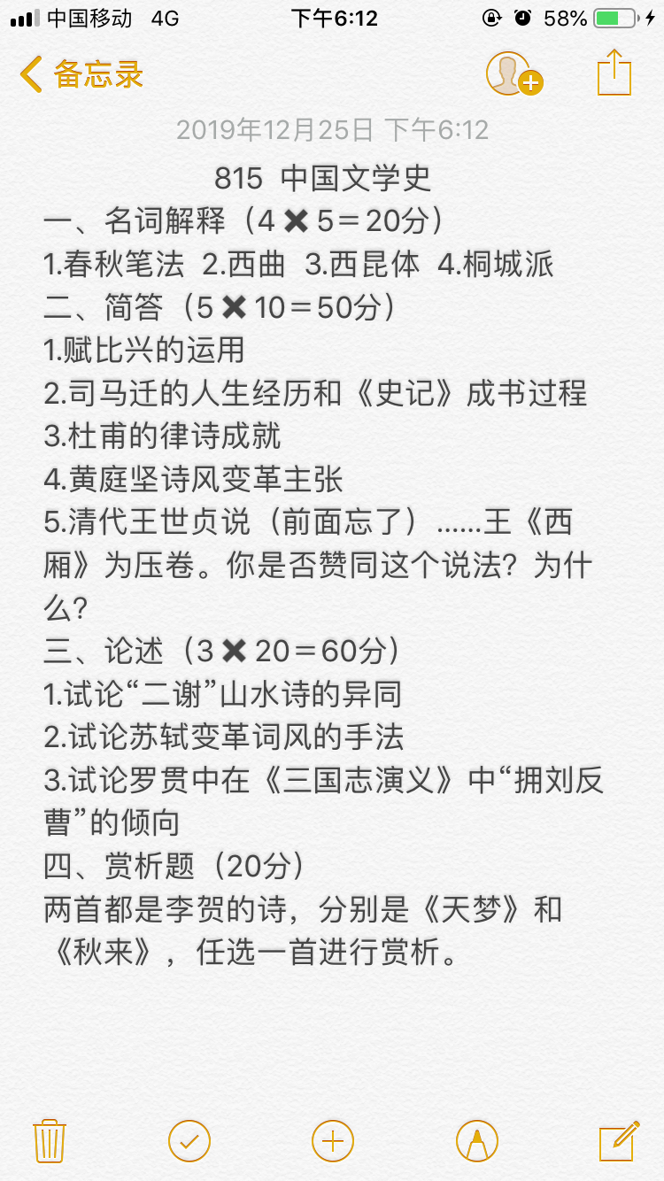 攒人品了,回忆版815中国文学史(712文学理论正在回忆中)