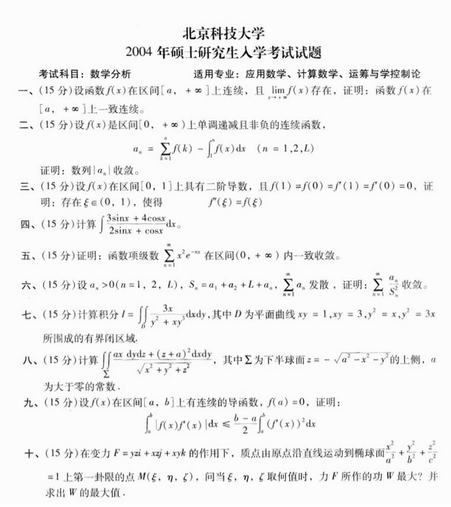 北京科技大学2003-2014考研数学分析真题(19)