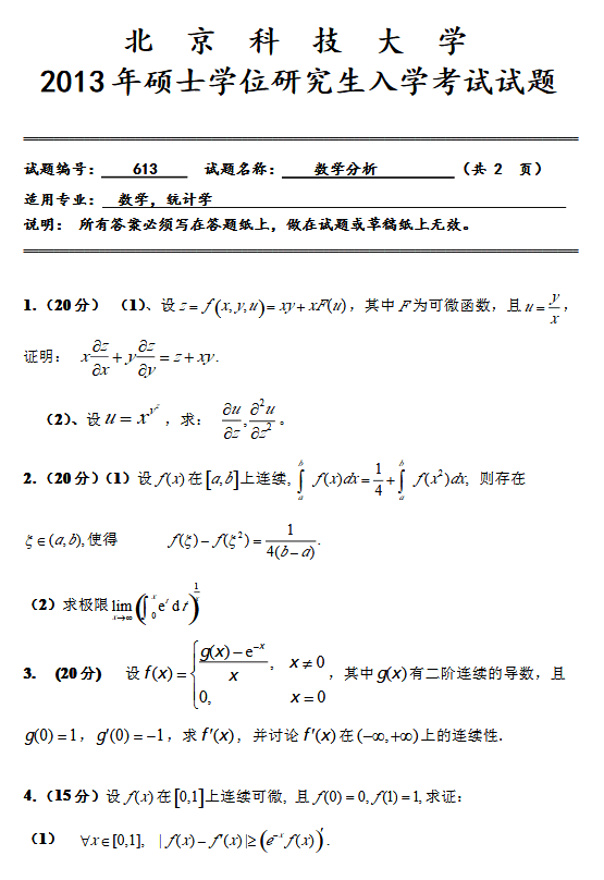 北京科技大学2003-2014考研数学分析真题(3)