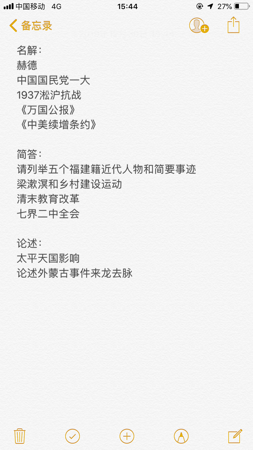 作者: 狗美美 时间: 2019-12-25 16:13 标题: 福师大 2020学科历史 真题回忆版 一,名词解释 5*10 1 万国公报 2 赫德 3 中美续增条约 4 淞沪会战 5 二,简答 1 中共七届二中全会 2 福建近代史名人和事迹5个 3清末教育方面的措施 4 三,论述 1太平天国对近代中国影响 2外蒙古的来龙去脉 忘掉一个名词 ...专业课考研资料 本站小编 免费考研网 2020-01-012020福建师范大学文学院文学评论写作考研真题