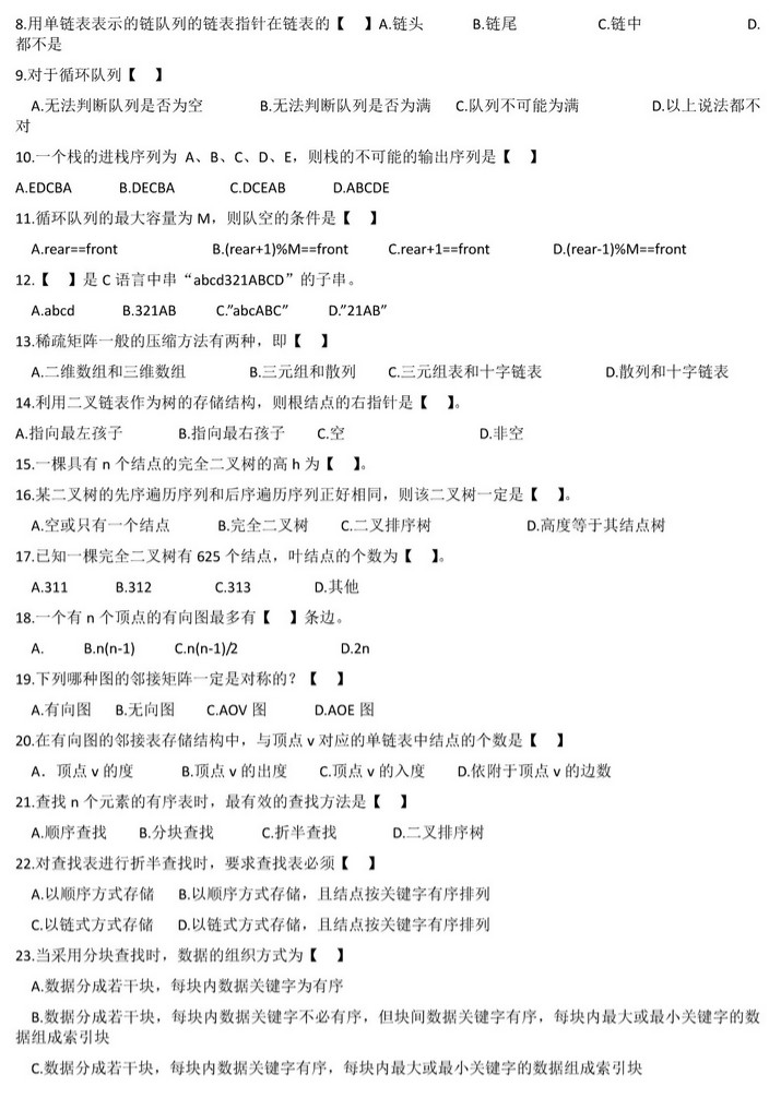 作者: 小龙人的西格猫 时间: 2019-12-30 19:07 标题: 上海理工大学848数据结构与操作系统粗糙回忆 今年题型大变革,数据结构全是算法题,操作系统也不简单。只能说我太菜都没复习到吧。亲身经历,不建议报上理计算机。 数据结构全是写算法前6题每道10分,第7题15分。 1,(1)让队列逆序(2)找出队列重复元素 ...
