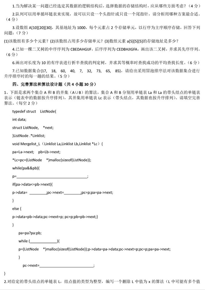 作者: 小龙人的西格猫 时间: 2019-12-30 19:07 标题: 上海理工大学848数据结构与操作系统粗糙回忆 今年题型大变革,数据结构全是算法题,操作系统也不简单。只能说我太菜都没复习到吧。亲身经历,不建议报上理计算机。 数据结构全是写算法前6题每道10分,第7题15分。 1,(1)让队列逆序(2)找出队列重复元素 ...