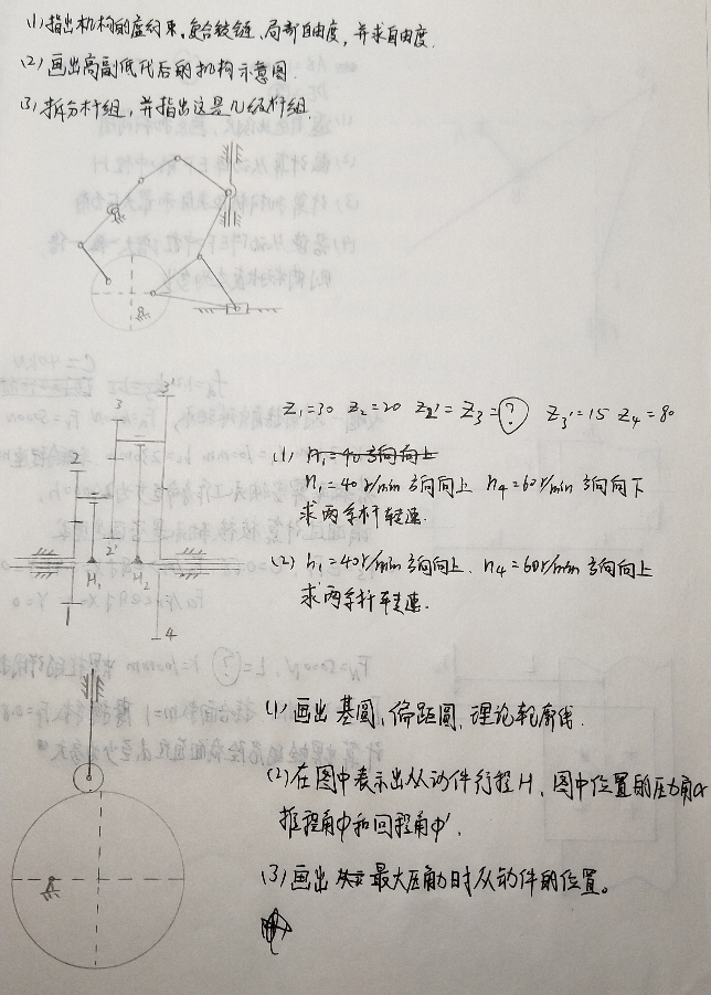 有两三道齿轮机构的题,想不起来了,但是都比较基础。