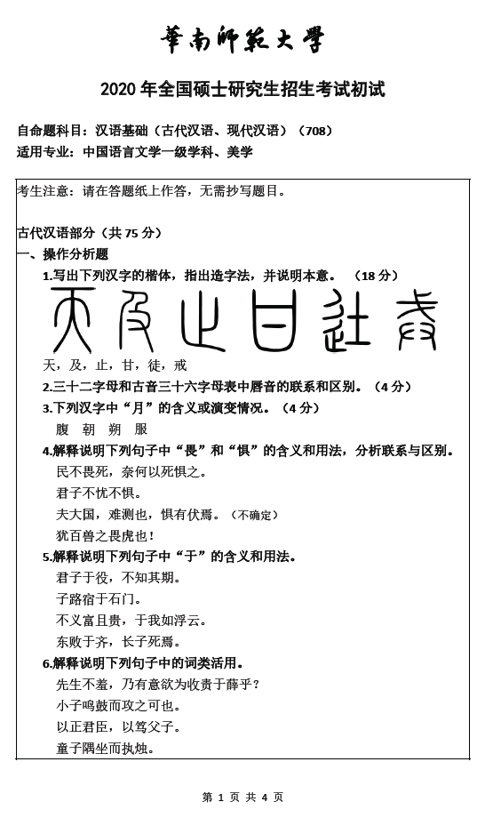 • 2020华东师范大学对外汉语语言学及应用语言学初试真题回忆