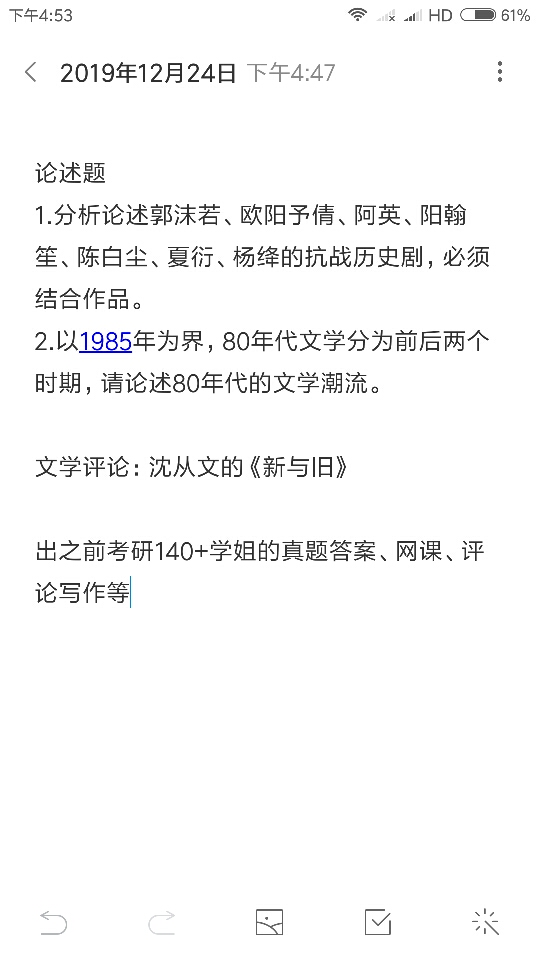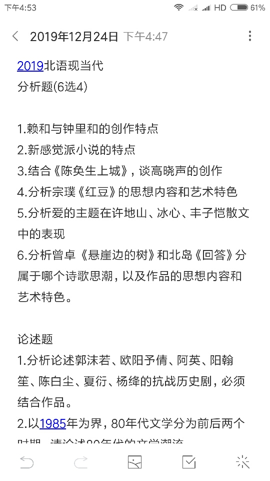 [2019初试真题回忆] 2019年北京语言大学现当代文学真题回忆