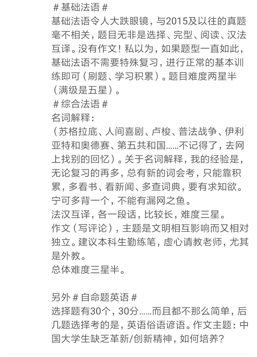 首都师范大学2020法语语言文学真题回忆