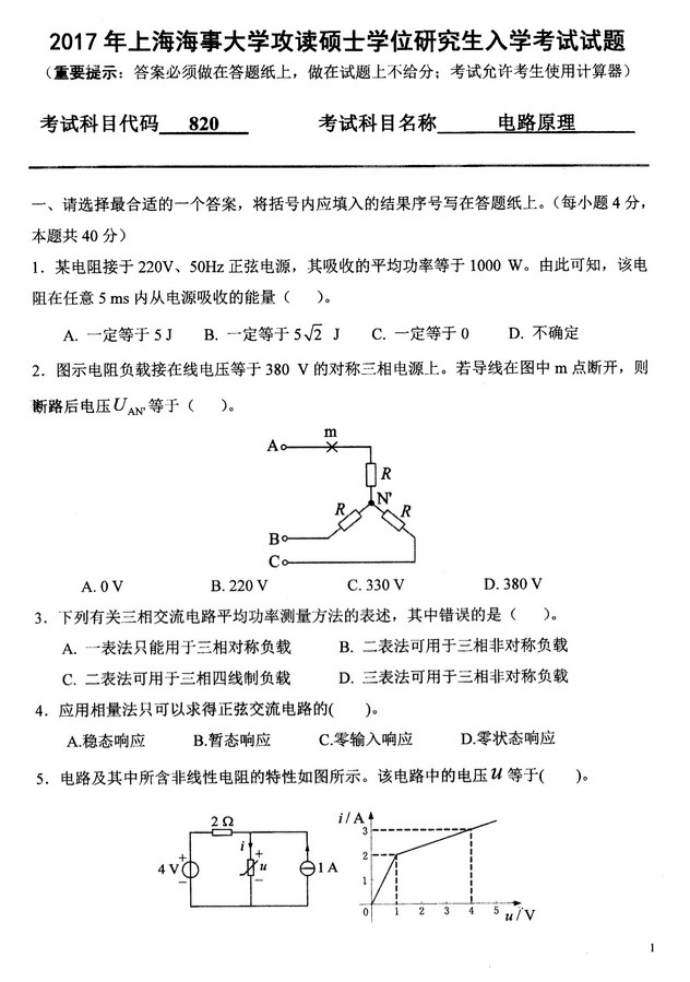 上海海事大学2018年2017年电路原理考研专业课真题(8)