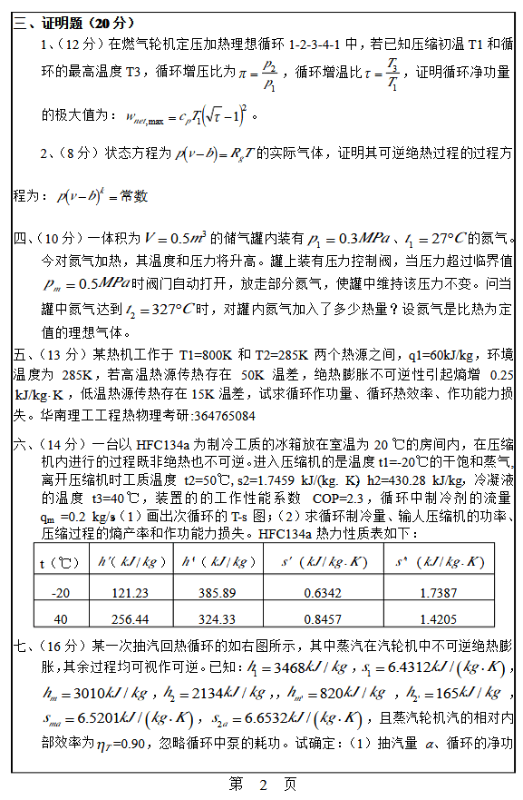 2020年华南理工大学813工程热力学硕士研究生考研试题(2)